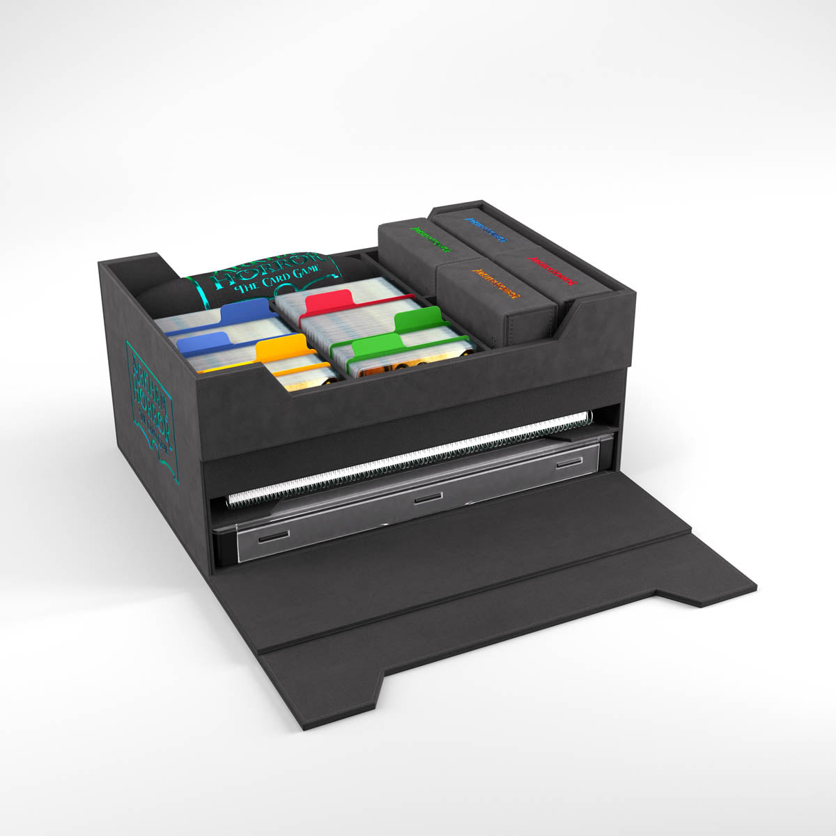 Spacious Top Section: Organize 4 Investigator Deck Tomes, 500+ sleeved cards, the Token Bag, and more.