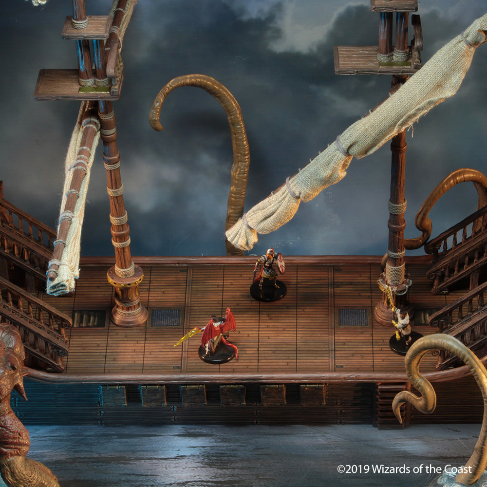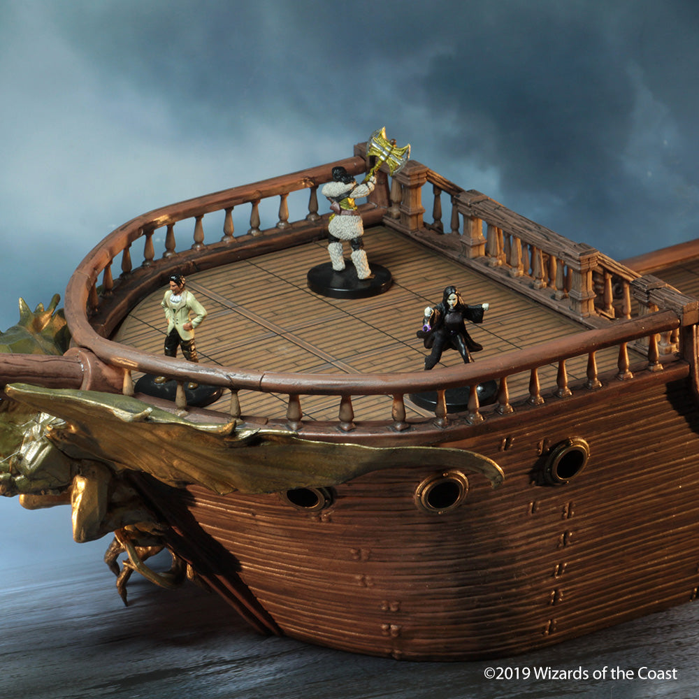 Hurry! Only0units left in stock!Adventure awaits on the high seas with the D&D Icons of the Realms: The Falling Star Sailing Ship! This fantastic fully-painted miniature of colossal stature and tremendous detail stands a whopping 17.2″ tall, 33″ long, and 6.4″ wide (12.6″ wide at the masts!) and has a myriad of features! Additionally, the deck tiles are reversible, with or without grid lines, to allow for whichever way you play or wish to display this premium show piece. This feature-rich ship includes multiple stackable deck tiles, allowing players to fight on the deck or in the dark underbelly of the ship, magnetized removable masts, removable stair cases, and even functional hatches on the sides of the ships for you to fire upon your enemies!Refund & Return policy